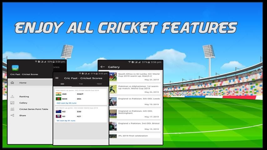 ✔ Cric Fast - Live Cricket Scores & Updates app you will get live updates on all the formats of Cricket like ODI, Test, T20, IT20, League, IPL, cricket cup 2019, ipl10 as well as all the international series.