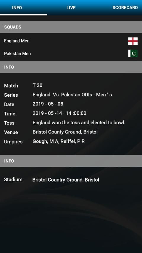You will find features such as Ball by Ball live updates, commentary, upcoming matches schedules of all format like One Day matches, Test matches, T20 Matches with detailed score cards.