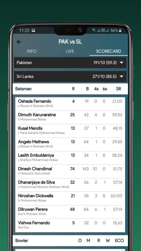 - Full detailed scorecard.
