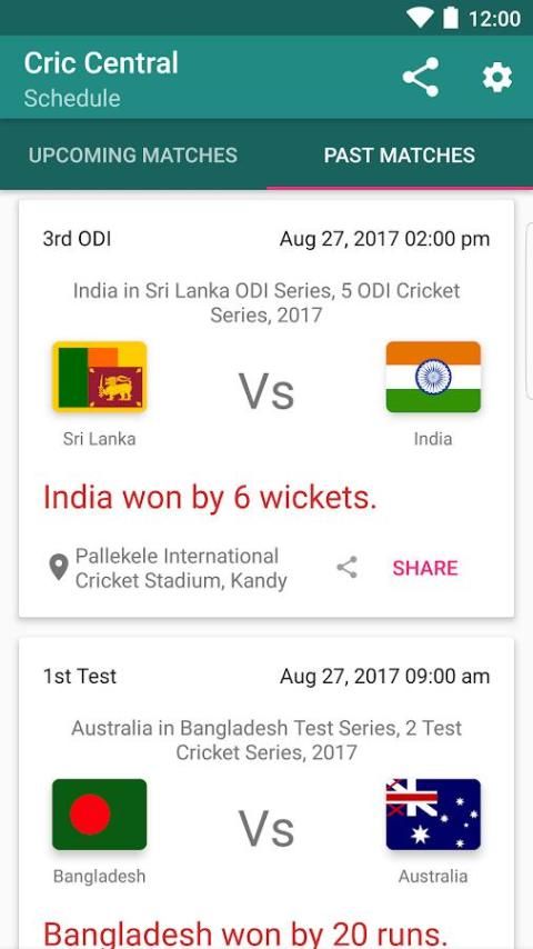 → Past pertandingan kriket hasil dengan dukungan offline