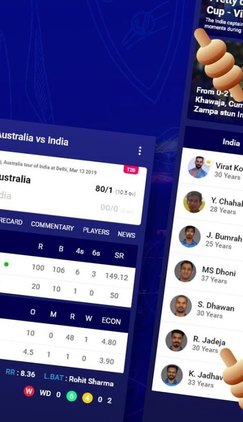 CricUP - Live Cricket Line will provide details of all running TEST, ODI, T20, IPL 2019, World Cup 2019 matches with