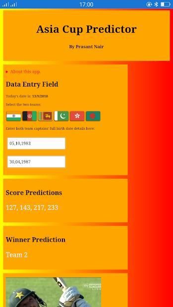 This is the predictor app for cricket Asia Cup 2018 developed by Prasant Nair from Jamshedpur.