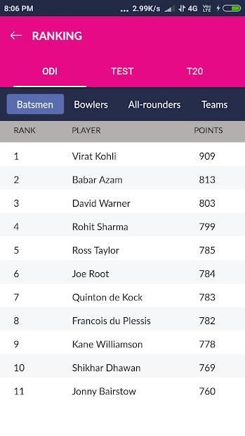 Feed Berita Terkini, Statistik Pemain, Peringkat (Odi, Test, T20), Rekaman (Odi, Test, T20),