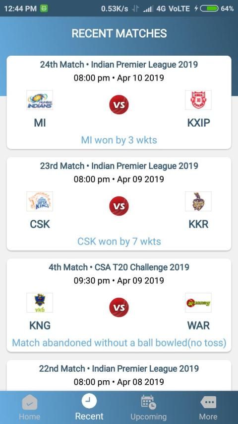 6. Cricket Live Line Give You Recent Results with full scorecard