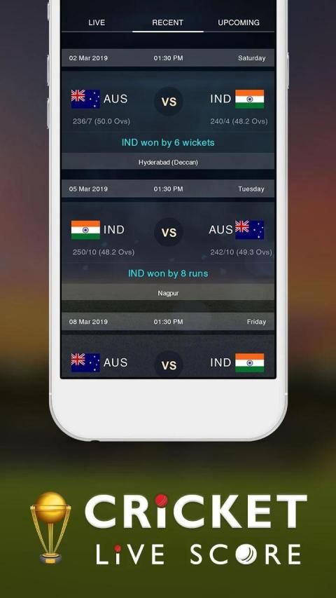 - Cricket Live Score & Schedule app you will get live updates on all the formats of Cricket like ODI, Test, T20, IT20, Leagues, cricket cup 2019 as well as all the international series.