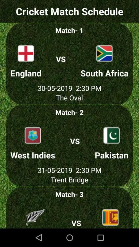 Aplikasi terbaik untuk pecinta kriket. Jadwal lengkap cricket worldcup 2019. Anda dapat melihat detail pertandingan tim catok stadion. Lihat saja pertandingan hari ini dan ketahui detail seperti tanggal dan waktu tentang pertandingan.