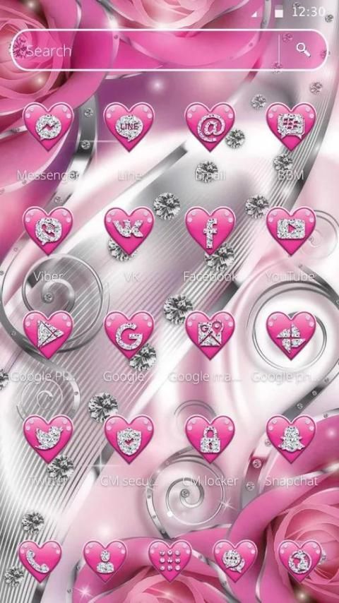 Replace Icons - Crimson pink Hati Berlian Tema menggantikan ikon default dengan menakjubkan, hati, bersemangat, modis, ikon keren dan keyboard dengan keyboard emoji.
