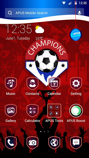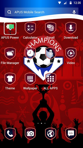 1. Croatia - Football Cup theme is free, but only compatible with APUS Launcher. If you want to apply it, please install APUS Launcher on your Android phone. Or download the theme and APUS Launcher. When you install APUS Launcher, there are variety of themes in APUS theme & wallpaper store, such as flower, butterfly, rose, gold, cool, cute cartoon monster, luxury gold business,black, simple, magic, sports(football,basketball,cricket),festival(Valentine's Day, New Year, Halloween, Christmas)、cute cat and dog, butterfly theme. Install APUS launcher to apply the cartoon theme. APUS can give you different style.
