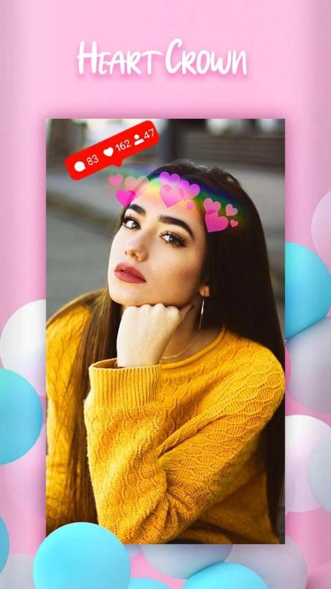 Crown Editor - Heart Filters for Snap can bring to you the best chance to look cute girl by hundreds of kawaii filters, cat face, dog face camera, heart camera effect, flower crown, heart crown, cat stickers.. This is also an all-powerful Crown Editor that can help you beautify your pics in various ways by 200+ Amazing Sticker Arts and heart filters for pictures. Crown heart sticker are easily adding: Just take a photo or choose from your Library, then pick a favorite heart crown face camera / flowers crown / cat sticker / dog sticker then put them into ur pics. So simple isn’t it!