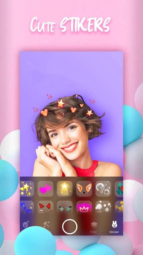 Anda dapat menambahkan stiker lucu untuk foto Selfie: Mahkota Hati, Mahkota Penyaring, Kelinci Lucu, Doggy Face, foto tajam, dan coachella. Gunakan untuk bersenang-senang dengan teman-teman Anda dan ambil beberapa foto kelinci yang menarik pilih berbagai efek kelinci atau stiker dan ambil foto sesuka Anda.