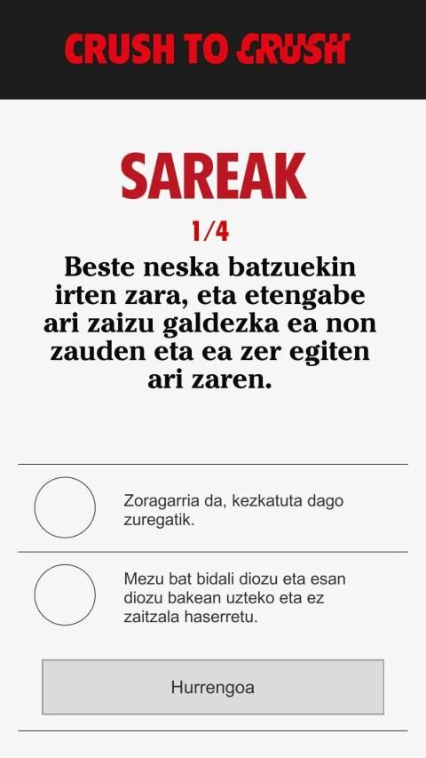 En esta app te planteamos unos cuestionarios rápidos en los que podrás ver qué tipo de relación tienes con tu pareja, en unos minutos sabrás si vuestra relación es de CRUSH <3 o de CRUSH