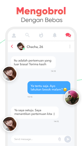 Ikuti aturan sederhananya : Cocok, Ngobrol & Kencan. Mudah dan menyenangkan - geser ke kanan untuk yang cantik dan geser ke kiri untuk melewati seseorang. Cocok apabila seseorang menyukai balik Anda! Lalu Anda cocok dan ngobrol kencan atau kencan yang penuh harapan lalu jalin hubungan 😉