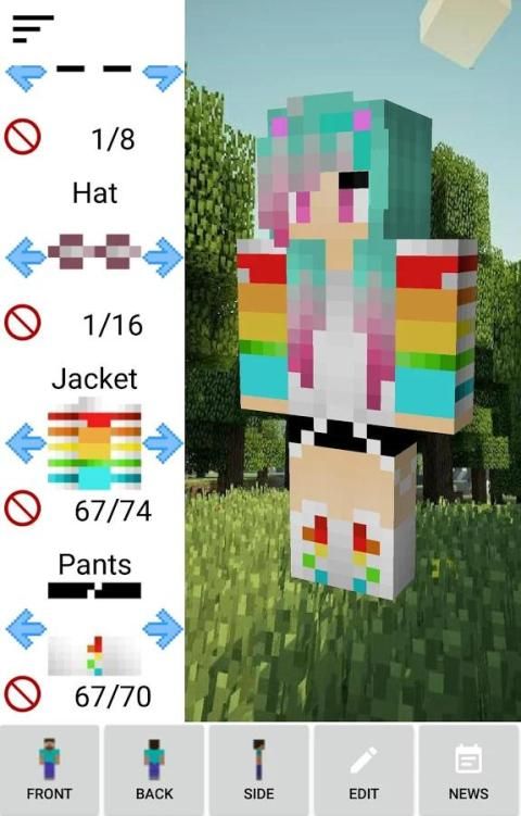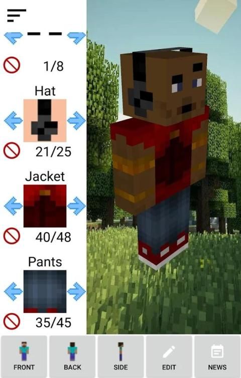 Memiliki ledakan menciptakan karakter kustom untuk Minecraft yang bisa Anda sesuaikan sampai ke detail terakhir. Lebih dari 1 Juta kombinasi dari kulit untuk membuat.