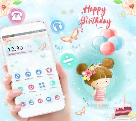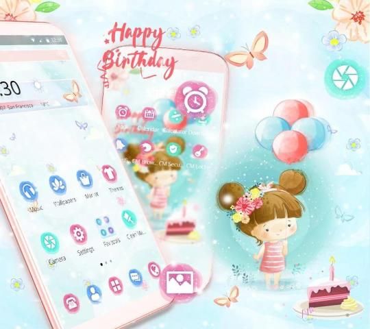 Apply the New Cute Birthday Girl Theme now, to make your phone faster and organized. The original app icons, clock and weather theme of your phone will be replaced by Cute Birthday Girl Theme.
