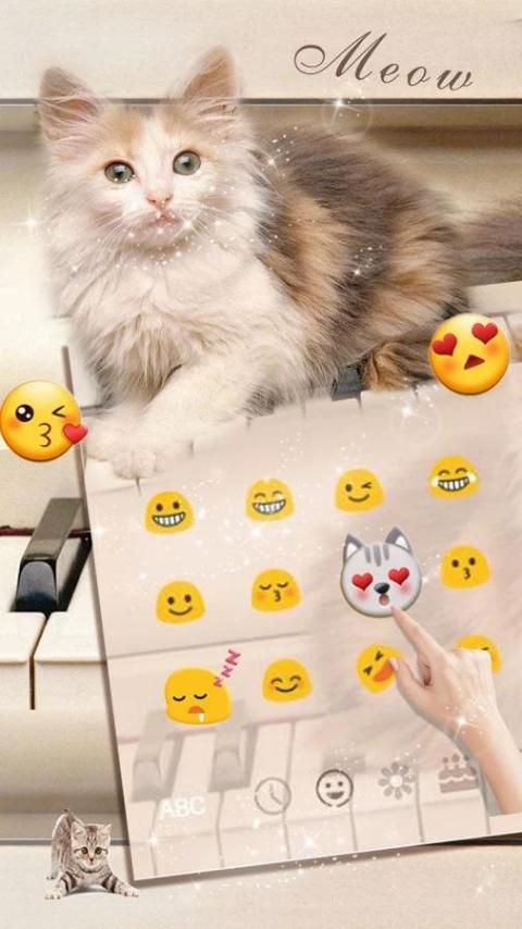 Cinta keyboard kucing dengan keyboard paino emoji kucing