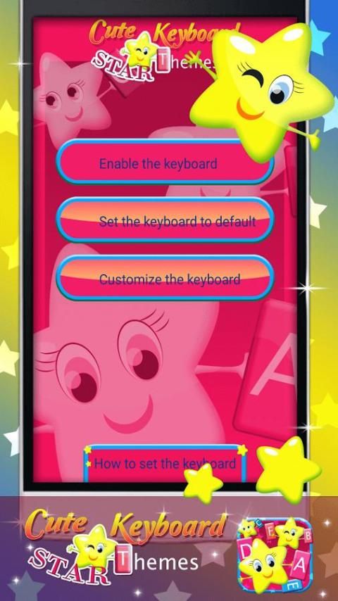 Disana kamu bisa mendapatkan APK Android yang terinstall di perangkatmu. 20,000+ Pengguna mendownload Cute Keyboard Star Themes versi terbaru di 9Apps secara gratis! Satu hal yang perlu kamu tahu bahwa aplikasi ini unik. Aplikasi HOT ini di rilis tanggal 2015-10-03. Ingat, aplikasi ini akan membuat kamu gembira.