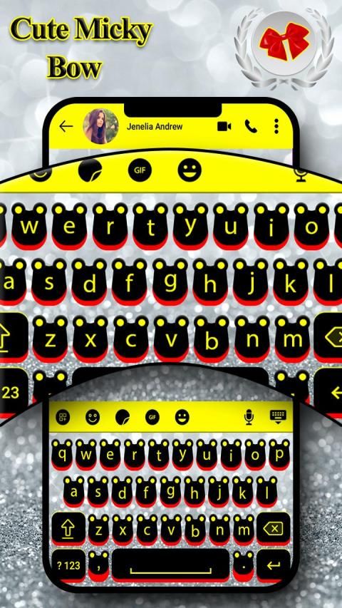 Download and apply Cute Mickey Bow Keyboard Theme for free and stylize your Android phone. Cute Mickey Bow Keyboard is an keyboard application, which can be used to customize your keyboard with some impeccable keyboard themes, to give it a classy look.