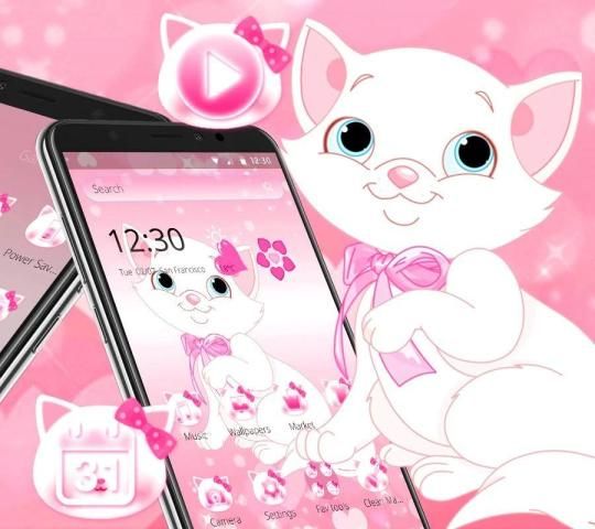 Still, are you using default theme. Have you bored with your old theme? Try it today to personalize android. Tidy your icons into folder to customize your wallpaper. If you find this theme useful so, rate it five stars. We would be pleased. Thank you all for paying attention to Cute Pink Cat Launcher Theme.
