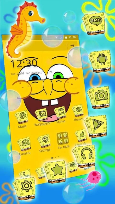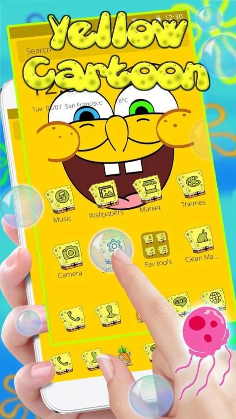 This Cute Yellow Cartoon Theme for android free theme is customized for Launcher.