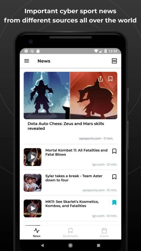 including announcements, results and statistics of major tournaments (LCS, LPL, IEM, ESL Pro League, Valve Majors, GSL, The International, etc.), links to video and broadcasts, interviews with teams and players, transfers, reviews of new video games and reports from gamers’ events. All the news is gathered automatically. Get the latest news of the game world right away and predict the outcomes of matches with Cyber Sport News on the spot!