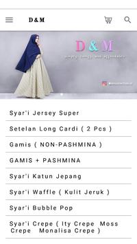 Dengan mengusung tema pakaian yang simple, elegant, chic dan nyaman, dan syar'i D & M hadir dengan produk yang berkualitas namun tetap terjangkau. Mari kita cintai Produk Indonesia.