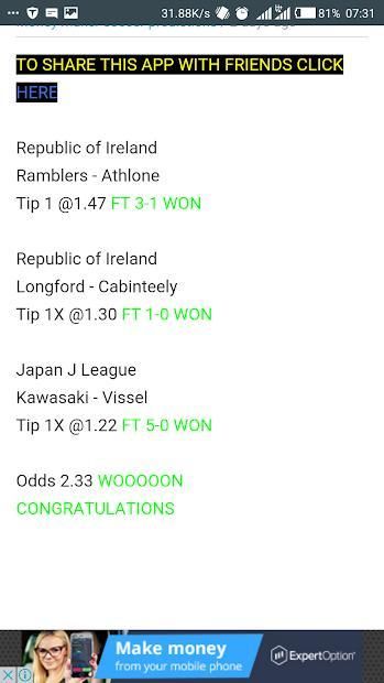 We offer sure daily winning tips, This is the best app for punters all over the World.