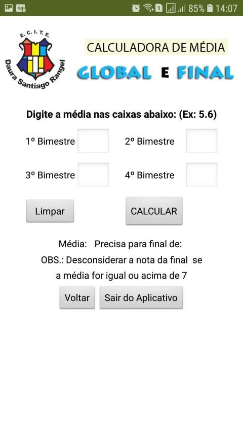 Este aplicativo foi criado para facilitar as alunos das ECITEs, calcularem suas médias e verificarem de quantos pontos precisam para concluir o ano letivo. Já que muitos ficam apreensivos a partir do terceiro bimestre.