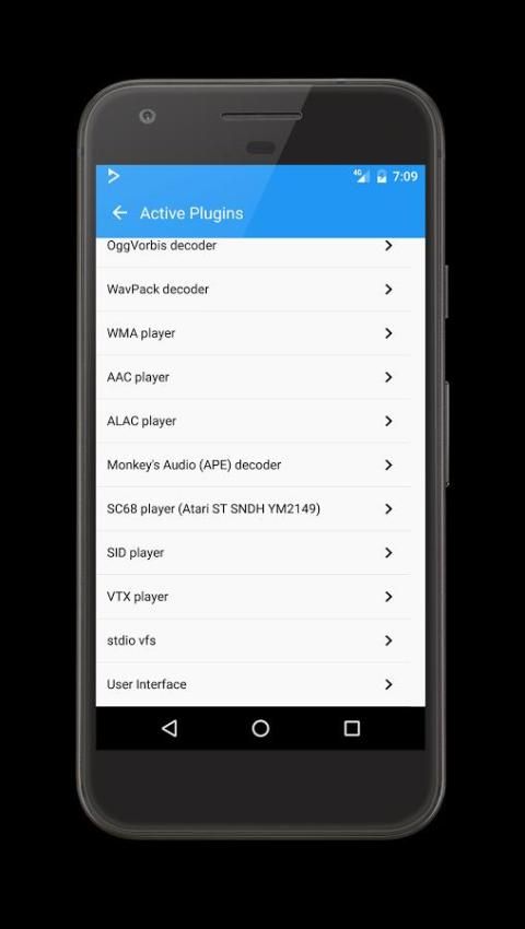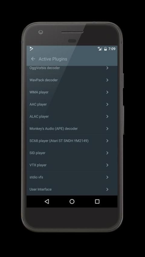 Decoder termasuk: AAC, ALAC, APE, SNDH, SID, VTX, AY, GBS, GYM, HES, KSS, NSF, NSFE, SAP, SFM, SPC, VGM, VGZ.
