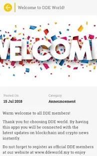 Sebuah aplikasi yang menghubungkan semua masyarakat kita untuk update berita kripto, teknologi blockchain dan berbagi teknologi keuangan. Dengan subcribing aplikasi ini, Anda akan diberitahu langsung dengan berita terbaru dari tim manajemen DDE.