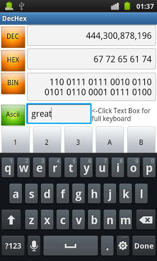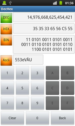 This App is designed for EASY, QUICK and SIMPLE conversions between Decimal, Hexadecimal, Binary and ASCII.