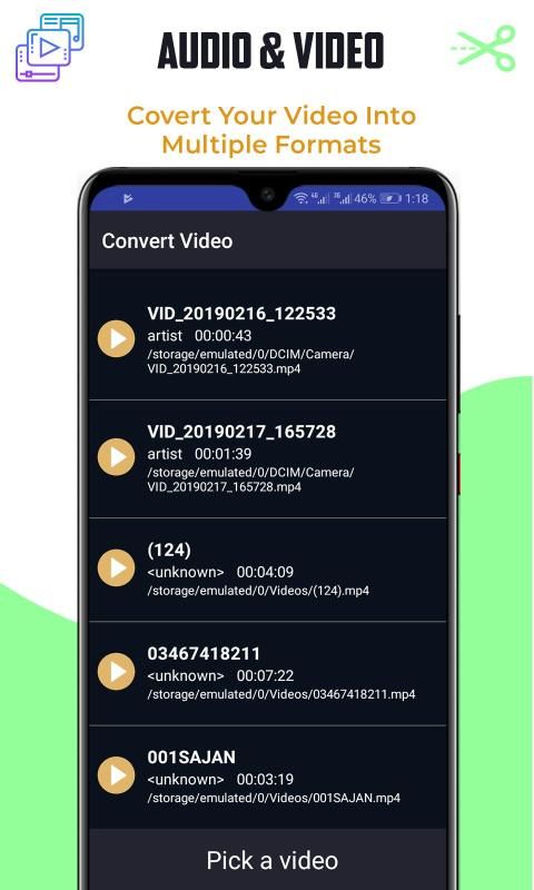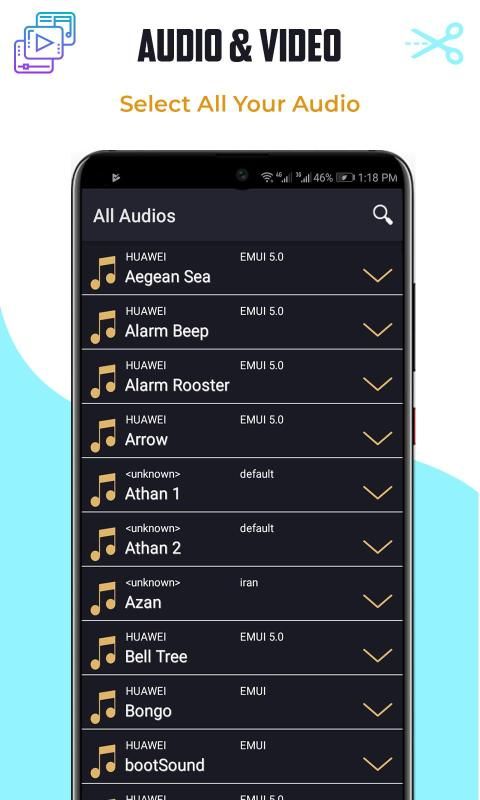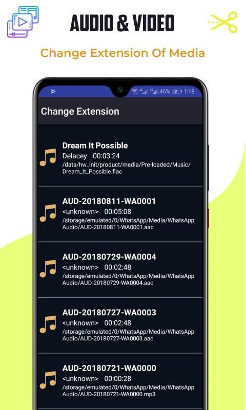 Ekstrak lagu audio dan musik video apa pun dan simpan. Pilih bagian terbaik dan penuh kasih dari Video yang ingin Anda konversi dalam Audio. Pilih dari salah satu format Audio yang didukung.