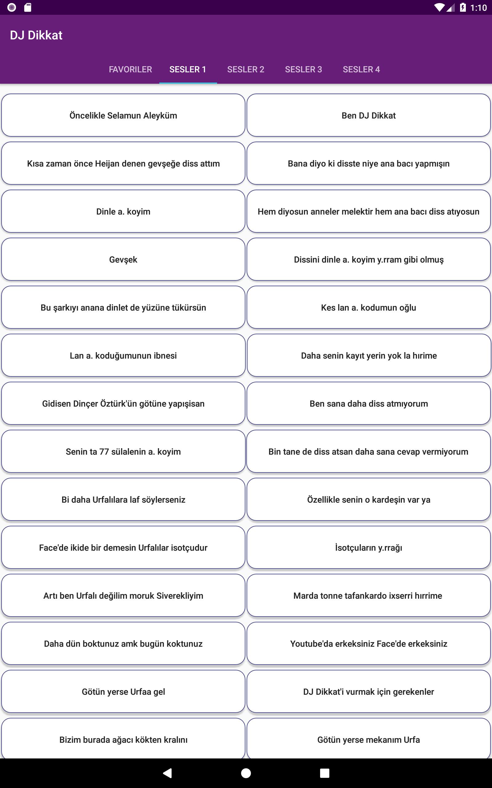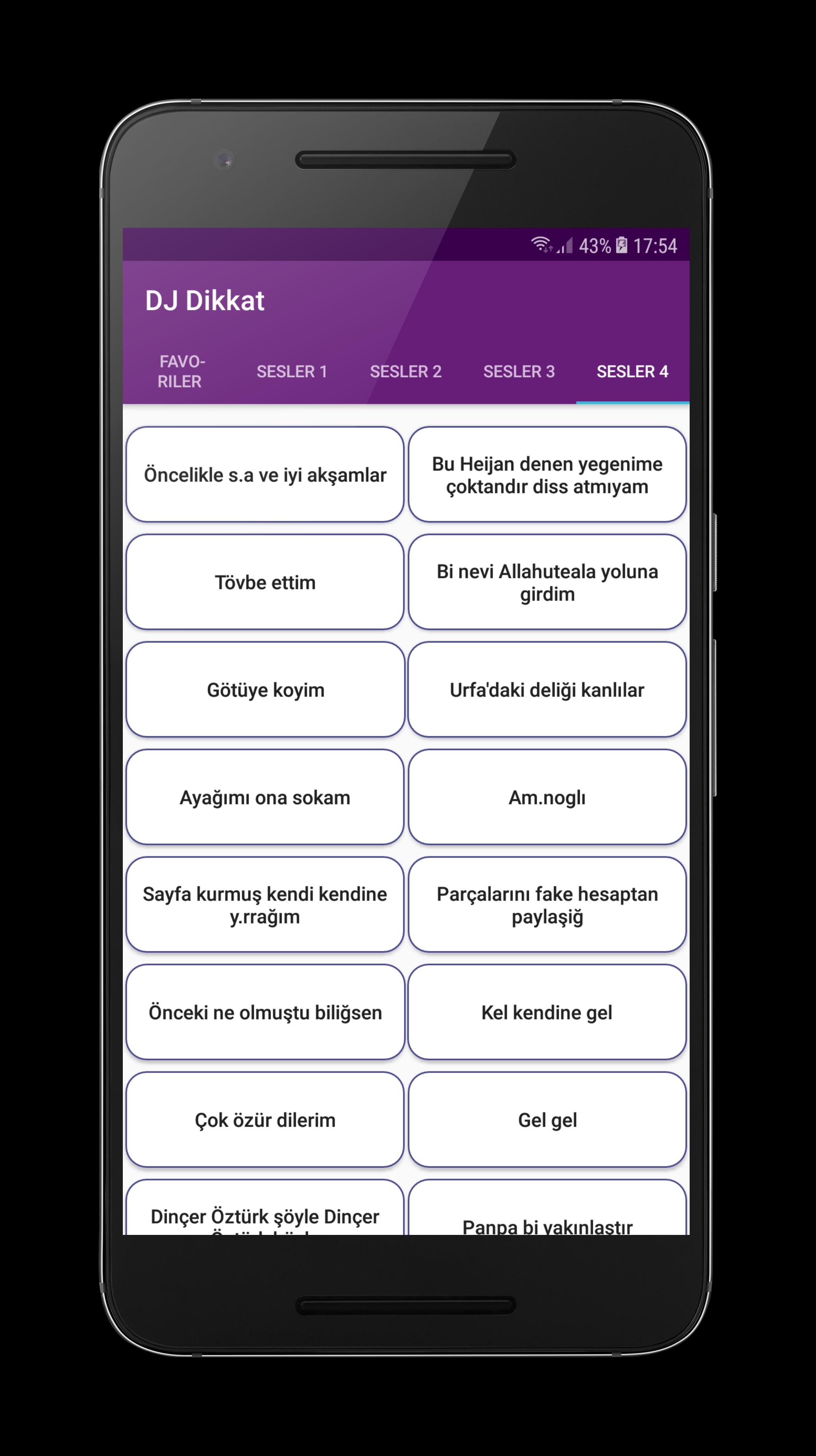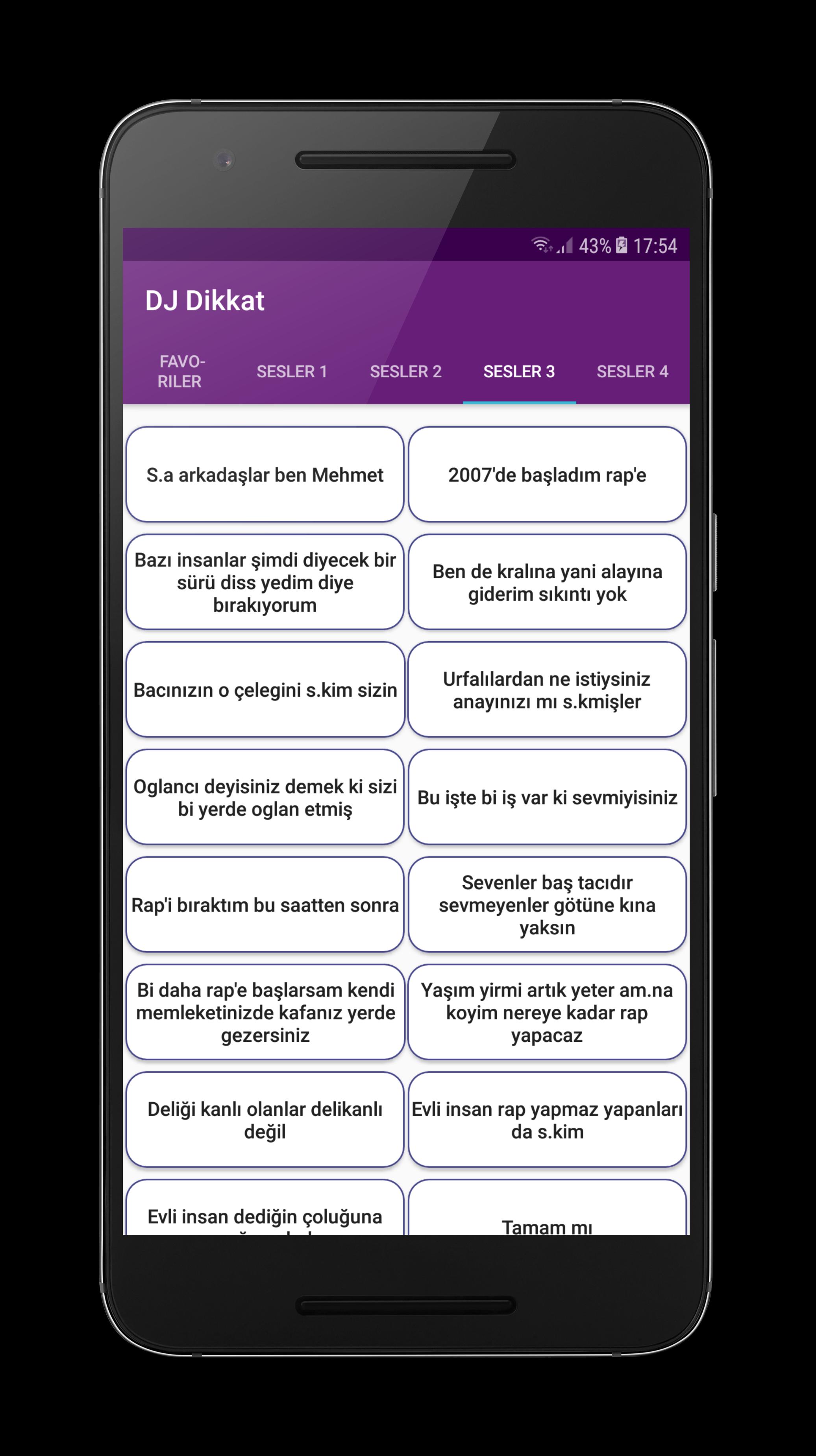 Urfa'nın delikanlı rapçisi DJ Dikkat'in 160'tan fazla sesini sizin için bu uygulamada bir araya getirdik. Beğendiklerinizi arkadaşlarınızla paylaşabilir ya da favorilere ekleyerek tekrar tekrar dinleyebilirsiniz.