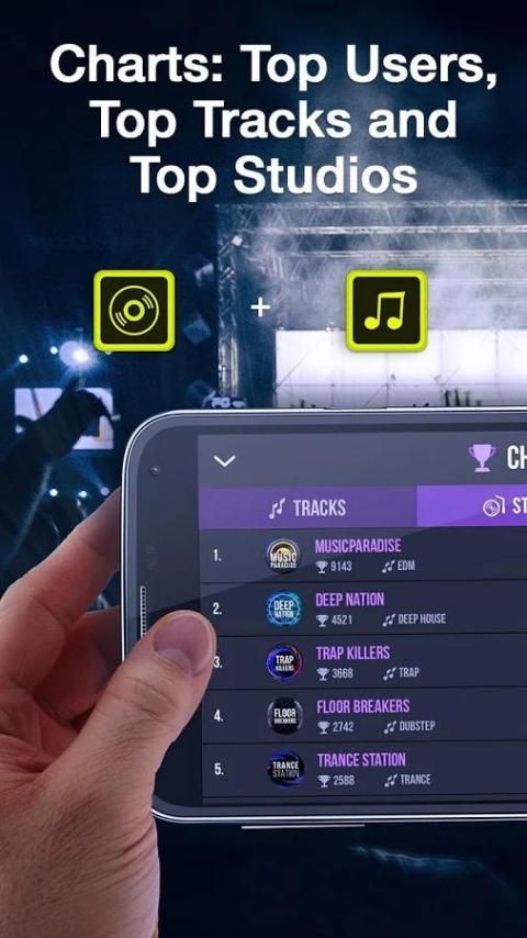 - Grafik Musik: Pengguna Top, Top Songs, Top Studios