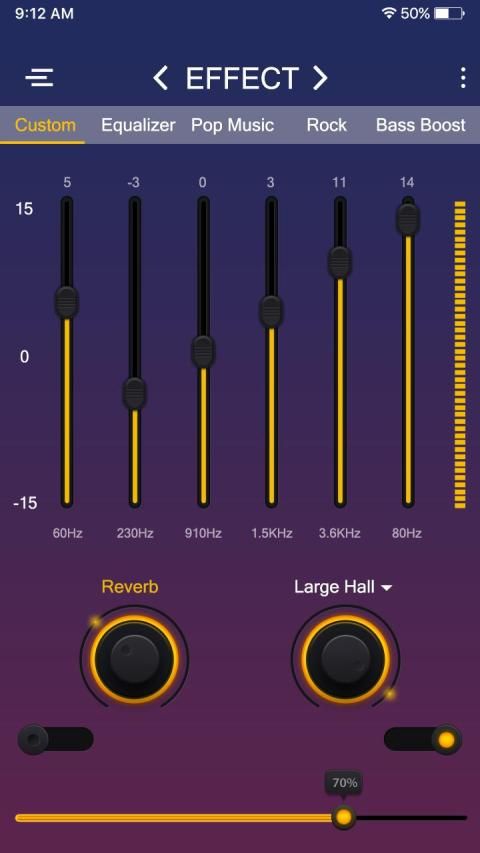 ♪ Music Equalizer is a volume slider with five band Equalizer with Bass Boost and Virtualizer effects.