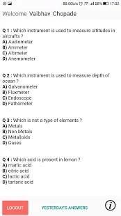 This app is usefull for HSC aspirants for MHTCET exam. It will show six questions on Physics, Chemistry and Maths, everyday. We can see correct answers of questions by clicking on yesterday's answers. This app will help student to enhance their score in MHTCET exam, which is conducted by Maharashtra Government