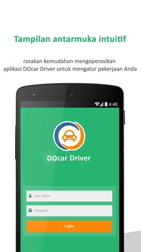 Aplikasi ini memudahkan Anda sebagai driver untuk mengontrol pekerjaan Anda. Silakan login dengan memasukkan username dan password yang diberikan oleh perusahaan rental mobil partner DOcar tempat Anda bekerja.
