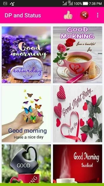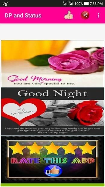 Aplikasi DP dan Status memiliki koleksi gambar yang bagus untuk status cinta pagi dan malam yang baik