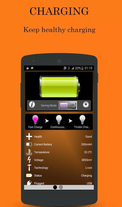 Memantau semua aplikasi yang menguras daya sementara tidak digunakan dan mengingatkan pengguna tentang aplikasi konsumsi yang tinggi. Menunjukkan berapa banyak daya baterai akan diperpanjang jika Anda menggunakan 1 penghematan keran. Memonitor konsumsi daya semua berjalan-aplikasi dan daftar Anda detail kepada manajer aplikasi, Battery Monitor, jelas menunjukkan status baterai dan penggunaan yang baterai saver biaya yang dengan sendirinya tanpa pengisi;