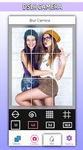 Kamera DSLR ini - Ultra HD Kamera Zoom memiliki latar belakang gambar auto blur dan manual titik filter blur pilihan efek. Pilih gambar dari galeri atau mengambil gambar dari kamera. Untuk mendapatkan gambar latar belakang auto blur pergi untuk membentuk bagian blur. Sesuaikan tingkat blur dengan keburaman yang mencari bar. Anda juga dapat menyesuaikan ukuran kuas.