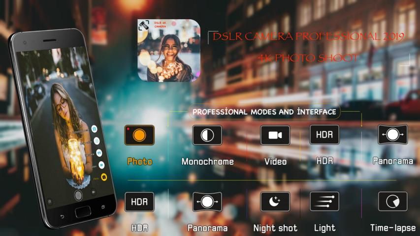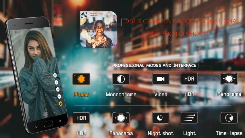 DSLR kamera Hd Professional, yüksek kaliteli telefonlar ve videolar almak için özel olarak tasarlanmıştır. Bu uygulama ile profesyonel kamera ile ultra kaliteli fotoğraf çekebilirsiniz. Bu uygulama kendi cihaz kameradan en iyi HD resim kalitesini elde etmek için kullanıcıları karşılamak için özel ilgi ile geliştirilmiştir.