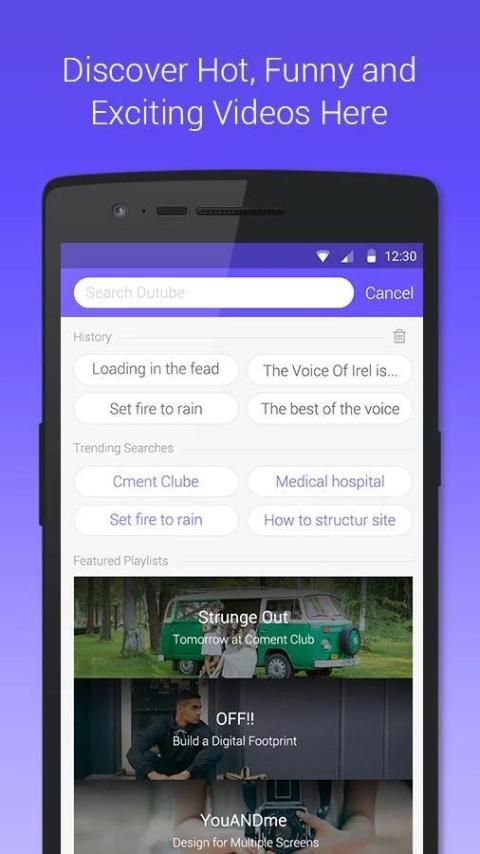 DU Tube,aplikasi yang menyediakan video terkeren dan terpopuler sedunia dengan kategori hot, kocak, popular dll. Du Tube adalah pilihan hiburan paling tepat untuk Anda. Download DU Tube sekarang juga!