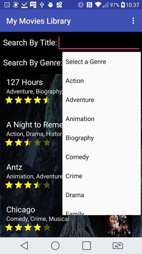 Lain kali Anda ingin memutuskan film, hanya gulir melalui aplikasi kami, dan dengan mudah memilih film berdasarkan judul atau genre.