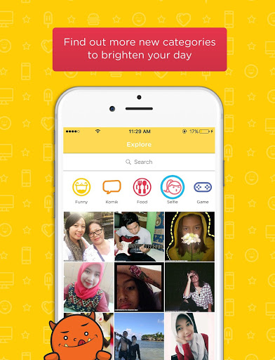Sekarang ada 12 Kategori loh di Dagelan App dari meme-meme lucu nan unyu sampe quotes2 gombal tapi nancep di hati lanjut ke oppa-oppa imut nan menggemaskan. Naah bagi yang suka selfie juga ada kategori khususnya loh skarang tapi klo tiba2 dijadiin meme sama orang lain siap-siap tenar yah :P