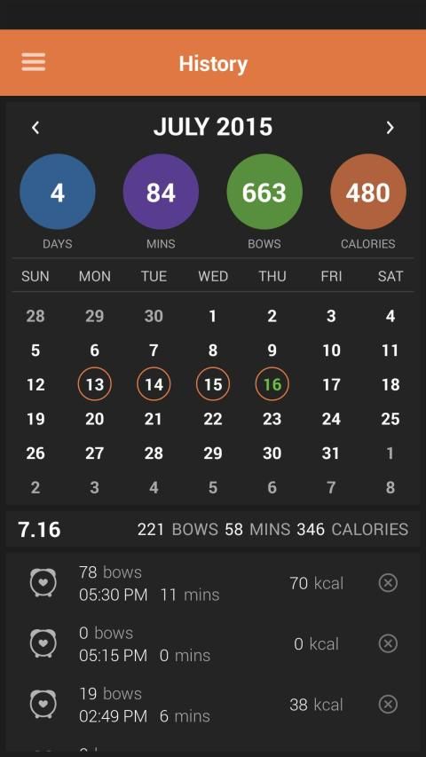 memeriksa kalori yang dikonsumsi melalui real-time latihan busur.