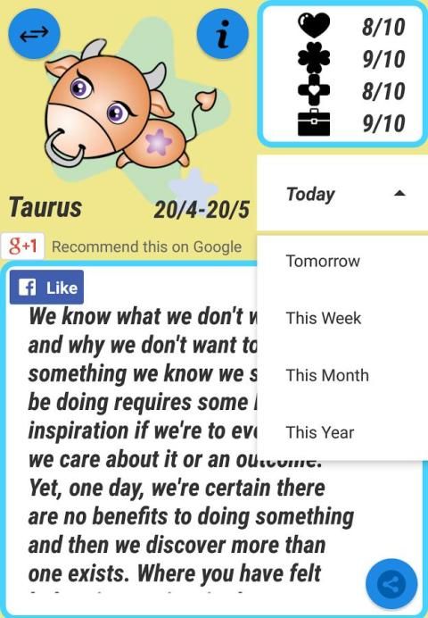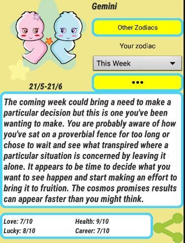 App membawa Anda menyenangkan hari dengan informasi yang diperlukan tentang cinta, keuangan, karir, beruntung ...