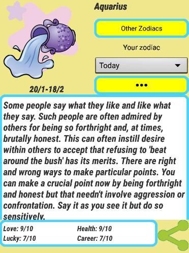 Dengan informasi dari 12 tanda-tanda horoskop: Aries, Taurus, Gemini, Cancer, Leo, Virgo, Libra, Scorpio, Sagitarius, Capricorn, Aquarius, Pisces!