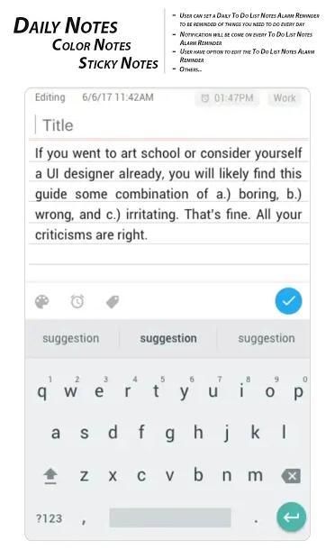 Daily Notes Color Notes, Sticky Notes! is the ultimate application to create sticky notes and reminders on your Android device.