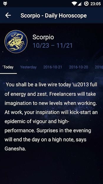 6.Zodiac compatibility: Ever wondered why you get along well with some but could be easily agitated by others? This is Horoscope doing its little trick. Whether with family, friends, co-workers, loved ones, or acquaintances, you'll see daily horoscope doing its magic by knowing personal things about you. Get ready to be amazed.