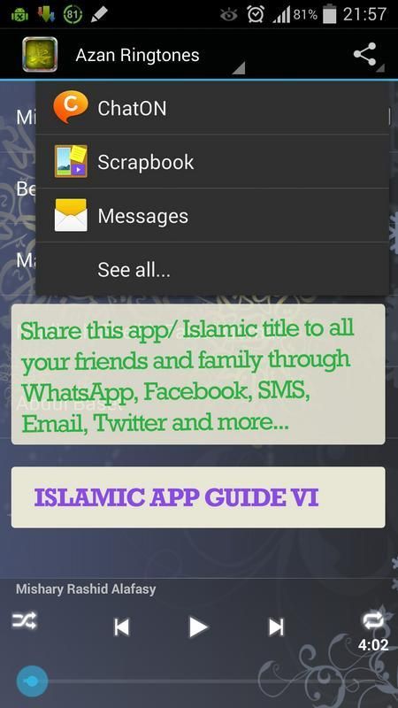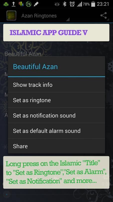 - Set sebagai nada dering dengan menekan lama di jalur suara Islam.