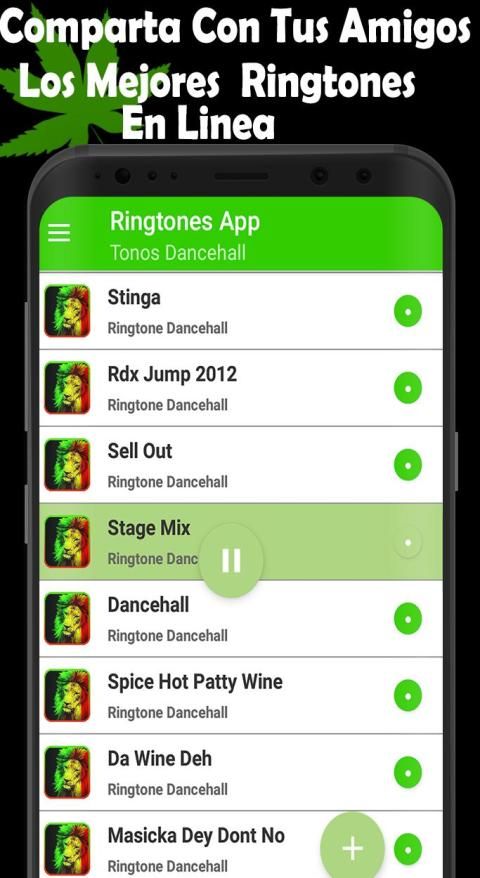 Disfruta de sonidos de notificaciones Dancehall para celular Reggae romántico temas de reggae para bailar que contiene múltiples categorías como canciones de Reggaestep, sonidos de todo tipo para mensajes de reggae gratis, reggae ringtones 2018 comparta ahora el mejor tono de llamada de reggae para Skinhead llamadas con melodías remezcladas de zona ganjah descarga desde cualquier parte del mundo gratis esta una gran variedad de selección de tonos Dancehall reggae music ringtones free para que puedas disfrutar.